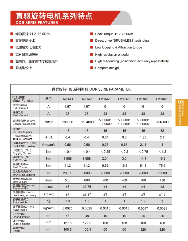 | 直驅旋轉電機系列參數DDR SERIE PARAMETER | |||||||