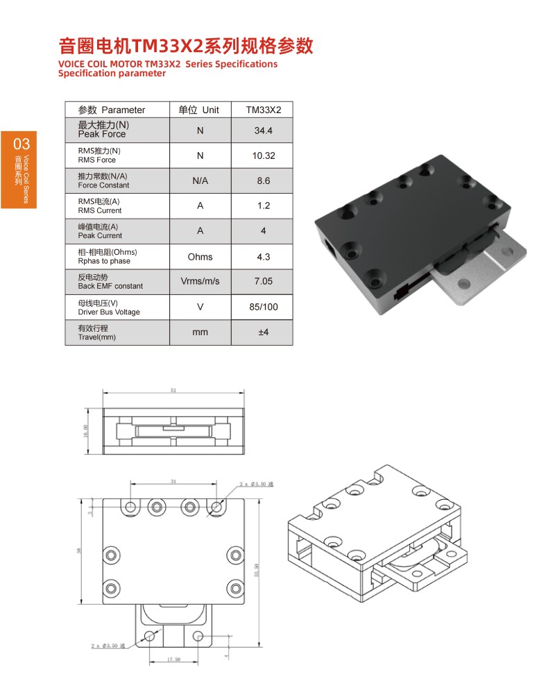 | 最大推力(N) Peak Force | 900.00 | 30.00 | 8.00 |