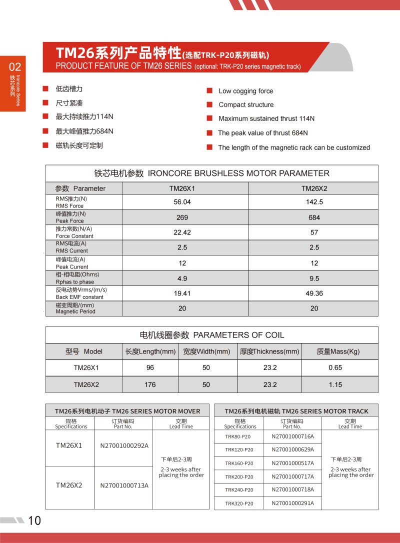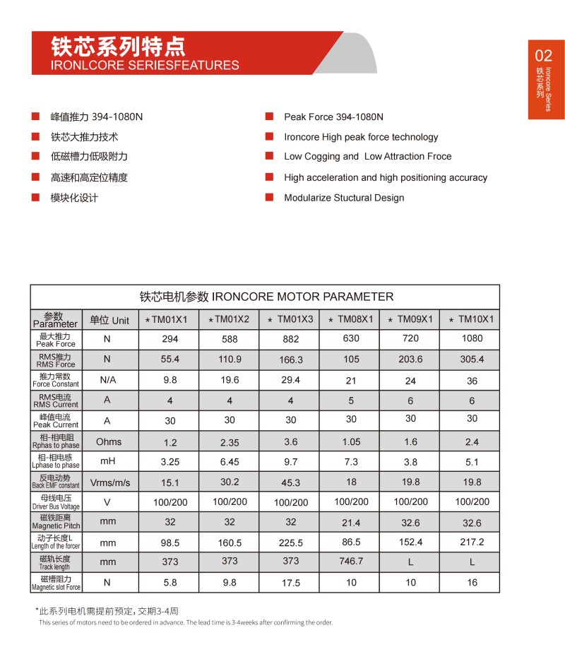 | 鐵芯直線電機參數(shù)IRON CORE MOTOR PARAMETER | |||||||