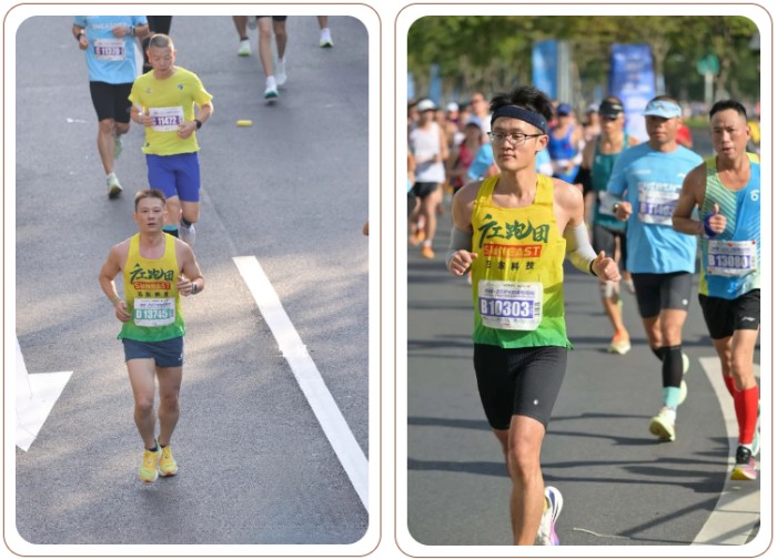 在比賽當(dāng)天,廣工大的隊(duì)員們穿著統(tǒng)一的日東科技定制運(yùn)動服,在陽光明媚的早晨出發(fā)。他們用腳步丈量城市的每一寸土地,呼吸著清新的空氣,享受運(yùn)動帶來的快樂!沿途觀眾的熱情加油聲此起彼伏,為選手們注入了源源不斷的動力。最終,廣工大所有隊(duì)員都成功完成了全程的比賽,以實(shí)際行動詮釋了什么叫堅持到底,其中,黃文龍選手以2:45:53的凈成績跑完全程,在17195名參賽者中獲得了排名101的好成績!