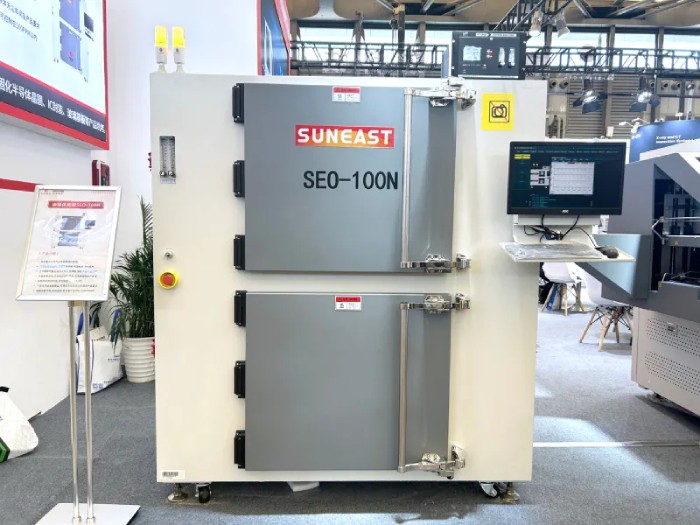 本次展會國內首發(fā)新品“半導體烤箱”,是日東科技持續(xù)創(chuàng)新中的又一重磅產品。此充氮烤箱適用于固化半導體晶圓、IC封裝、玻璃基板等產品的烘烤。整個內腔全密封設計,千級潔凈室老化測試,箱體內氧含量可控制在100PPM以內,高精度溫控(控制精度可達到0.5°C),可滿足半導體產品的高性能要求。