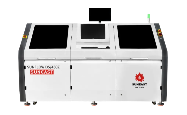 日東科技“雙電磁泵選擇性波峰焊”國內首創(chuàng)電磁泵技術,Z軸獨立升降,雙泵可根據程序設置獨立運動,在有效提升產能的情況下?lián)碛懈蟮撵`活性。設備全程顯示焊接狀態(tài),雙焊接噴嘴間距自動調整。