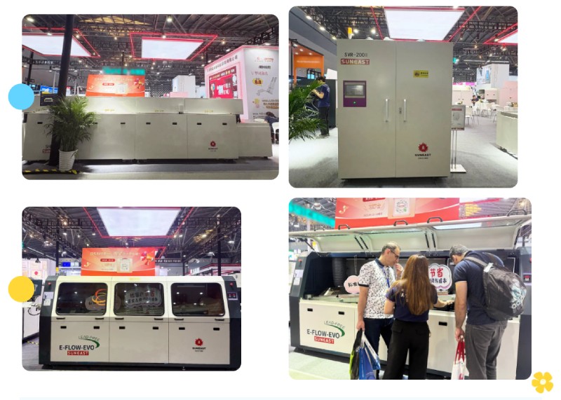 本次展會日東科技展出了多款設備,憑借全球首創(chuàng)的焊接區(qū)密封設計與分段傳輸方案,徹底解決了傳統(tǒng)隧道式波峰焊的卡板、維護難題,顯著提升焊接品質與設備性能,成為展會焦點。同時展出的雙泵選擇性波峰焊、回流焊/波峰焊--EVO/氮氣波峰焊及垂直固化爐等經(jīng)典設備,也吸引了眾多新老客戶駐足交流。