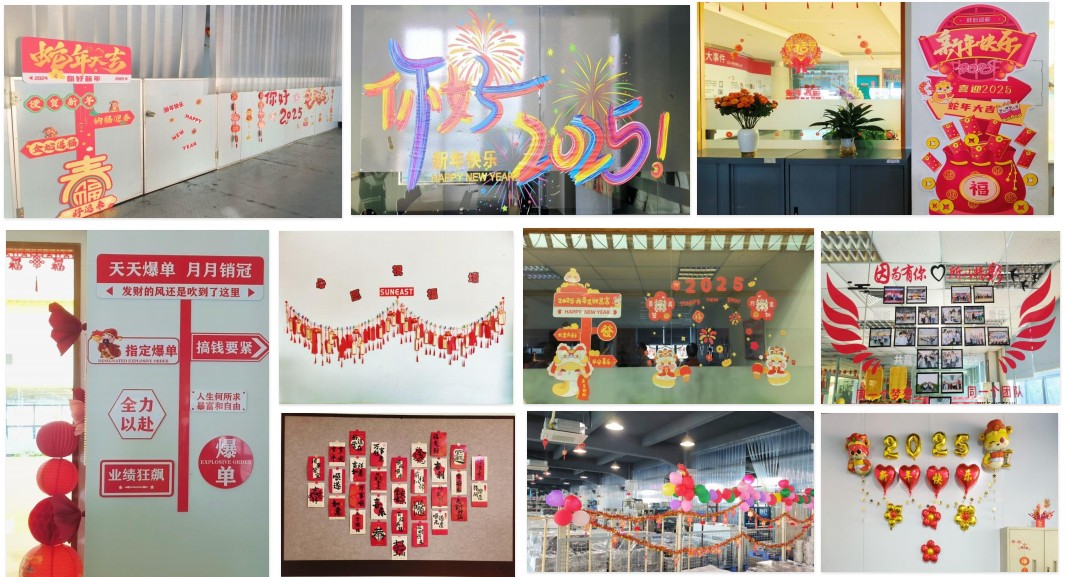 歷添新歲月,春滿舊山河。蛇年臨近,為激發(fā)員工活力及創(chuàng)造力,營(yíng)造歡樂活潑的節(jié)日氛圍,公司于2024年12月27 日舉辦了“迎新春慶元旦部門布置評(píng)比競(jìng)賽”。各個(gè)部門紛紛發(fā)揮創(chuàng)意,每個(gè)角落都精心布置,洋溢著新年的喜慶和溫暖。此次評(píng)比活動(dòng)不僅是對(duì)公司文化的一次生動(dòng)詮釋,也是全體員工向新年獻(xiàn)上的一份真誠(chéng)的祝福。