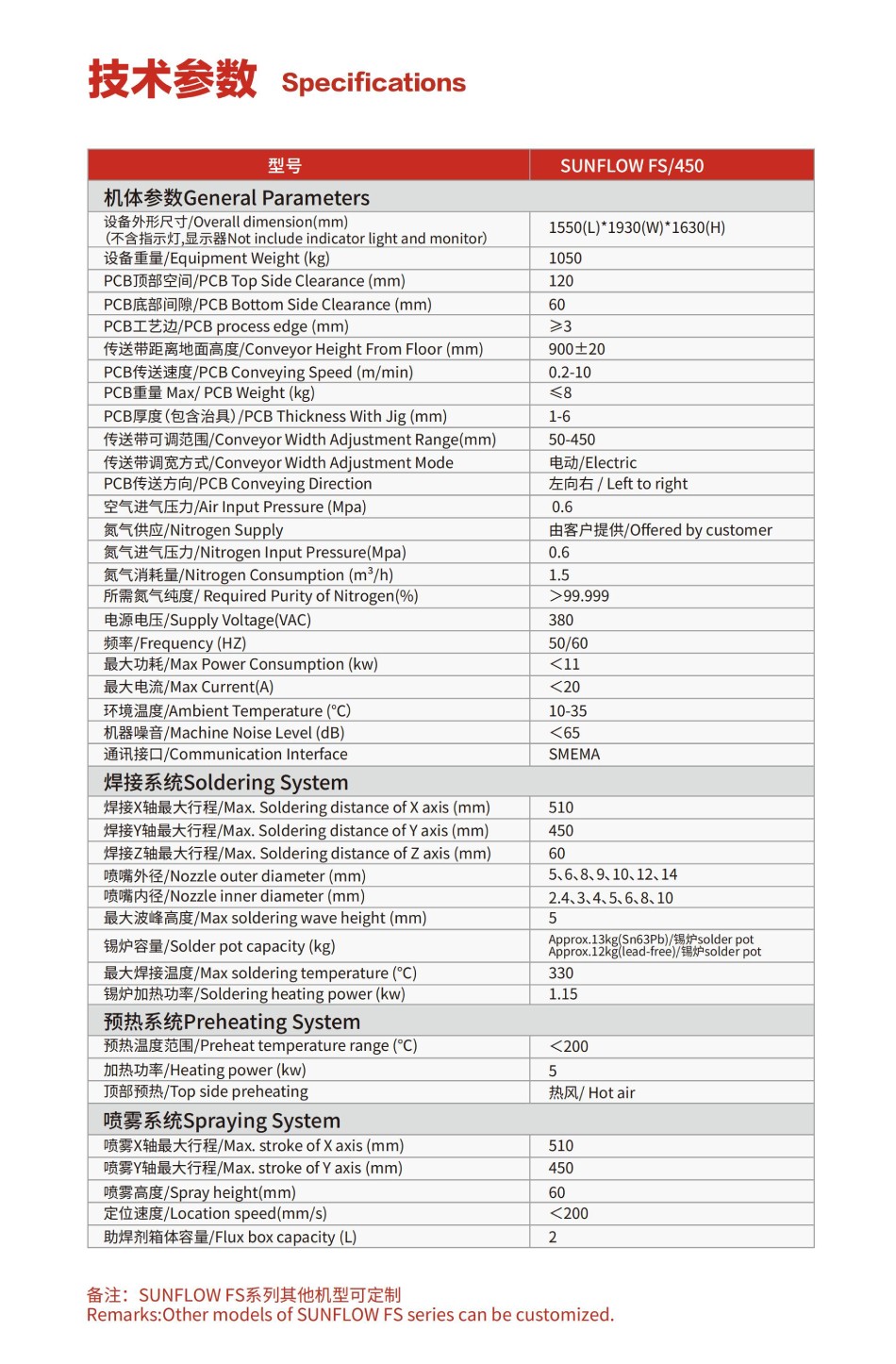 | 備注:SUNFLOWFS系列其他機(jī)型可定制 | |